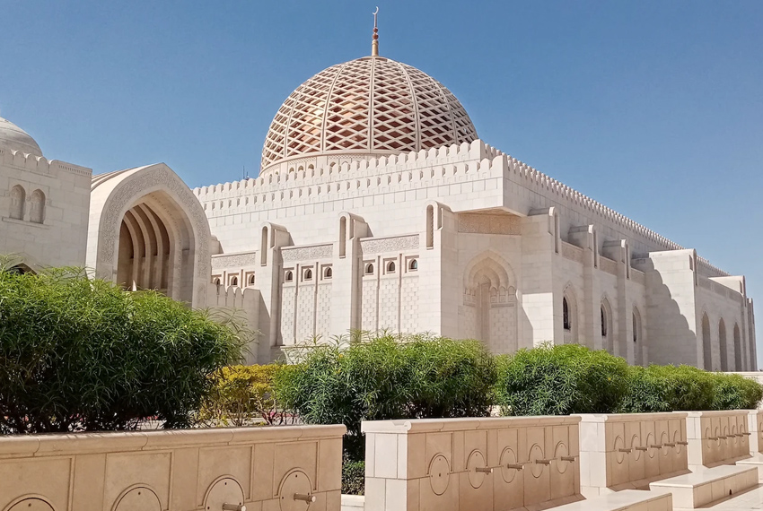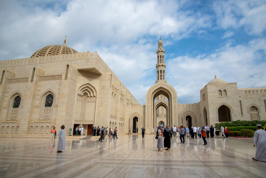 - Our first stop is a visit to the Sultan Qaboos Grand Mosque, the largest mosque in Oman and one of the most popular places to visit in Muscat. It can accommodate up to 20,000 worshippers at a time. The structure features a blend of various architectural styles, highlighted by its beautiful décor and the spectacular crystal chandeliers and handmade Persian rugs, one of the largest in the world.